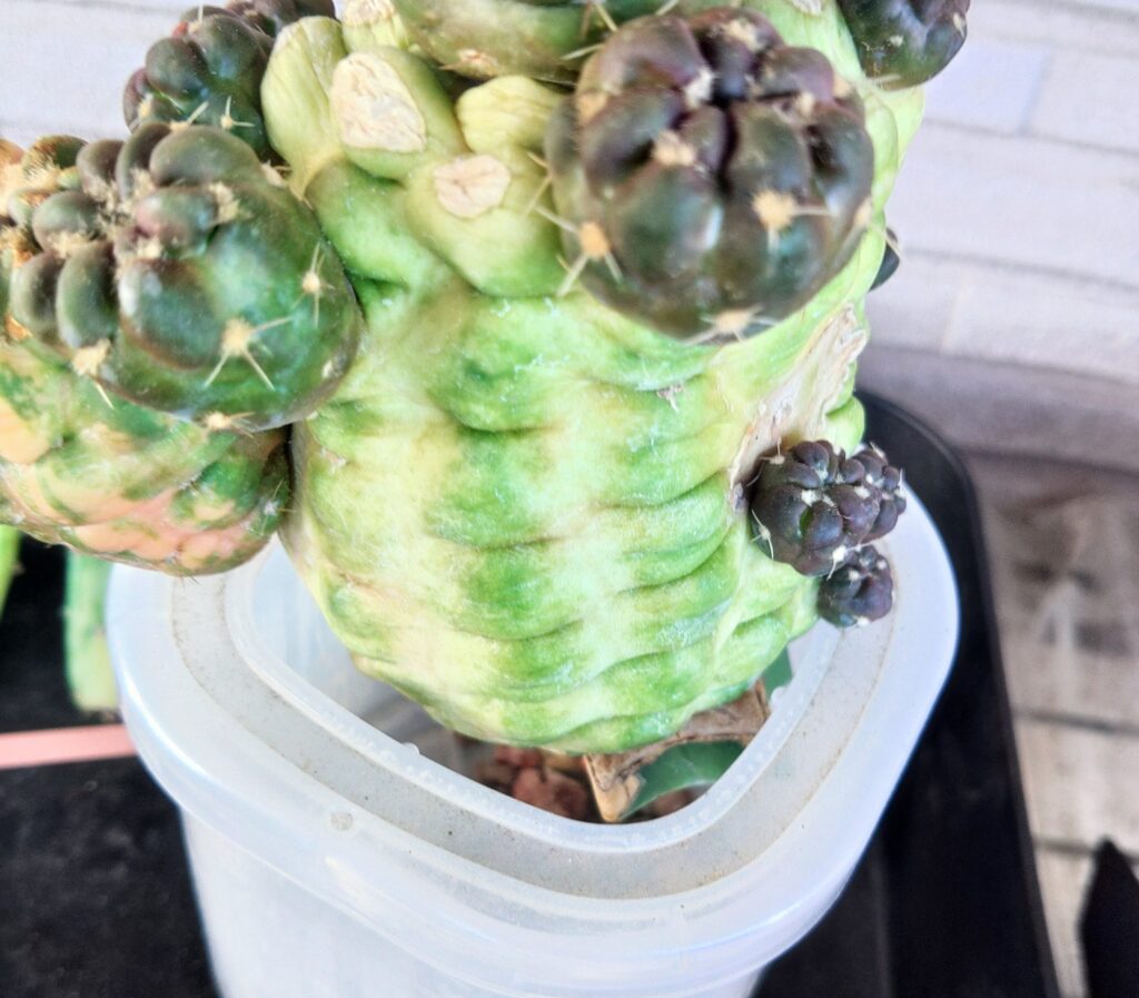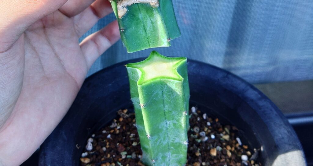 柱サボテンは胴切りして残った方からも、横から脇芽のように出てきます。
